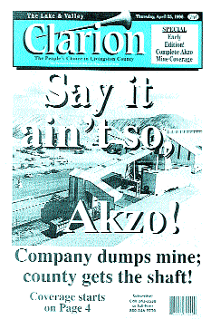 A large typeface headline in the November 4, 1994 Clarion proclaimed, "Akzo